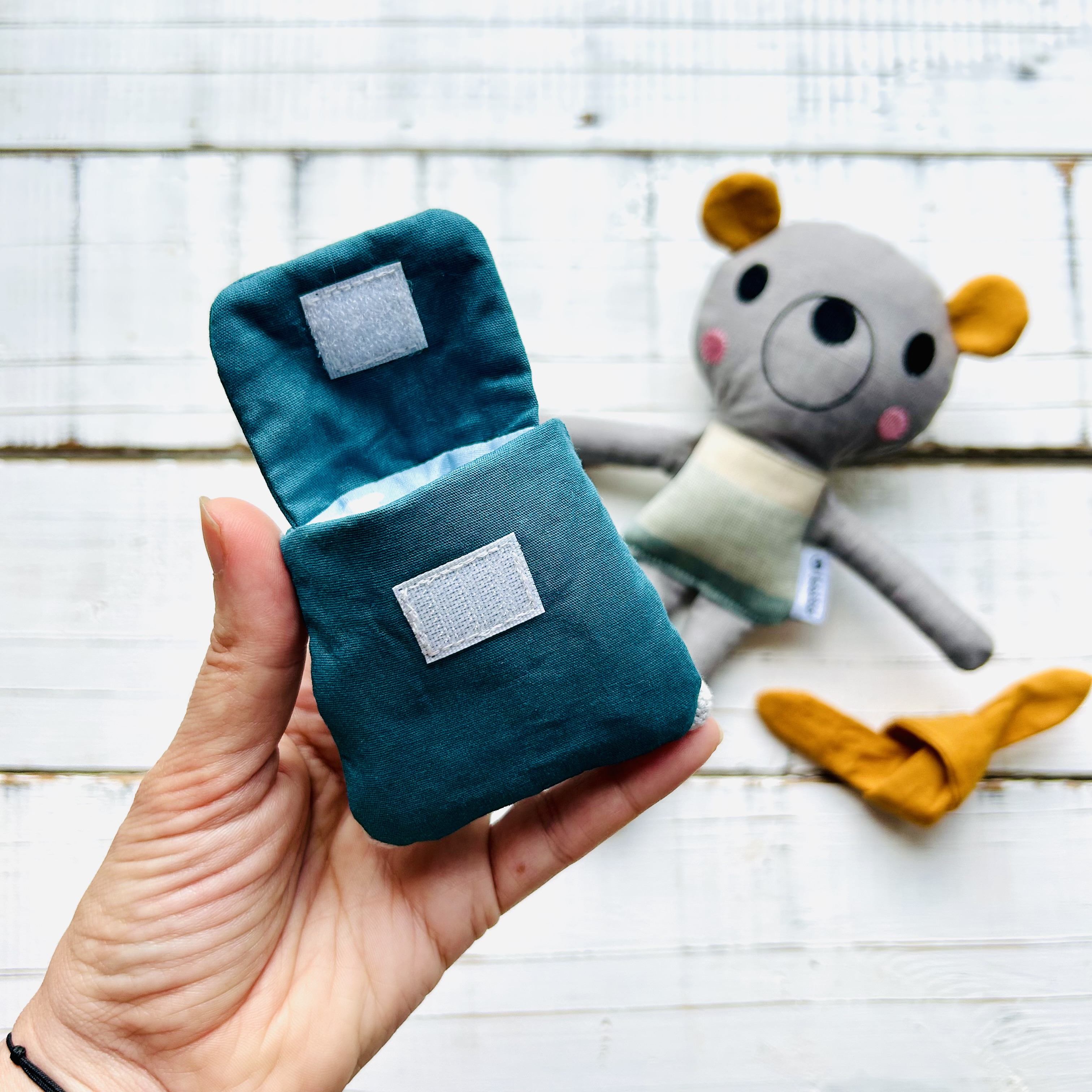 Zvířátka mají svůj batůžek a také šáteček, který jde snadno rozvázat. Batůžek se zapíná na suchý zip. A můžete medvídkovi či jezevci pořídit také spacáček – na výběr máme ze tří barev, hořčicový, petrolejový či tmavě růžový.
