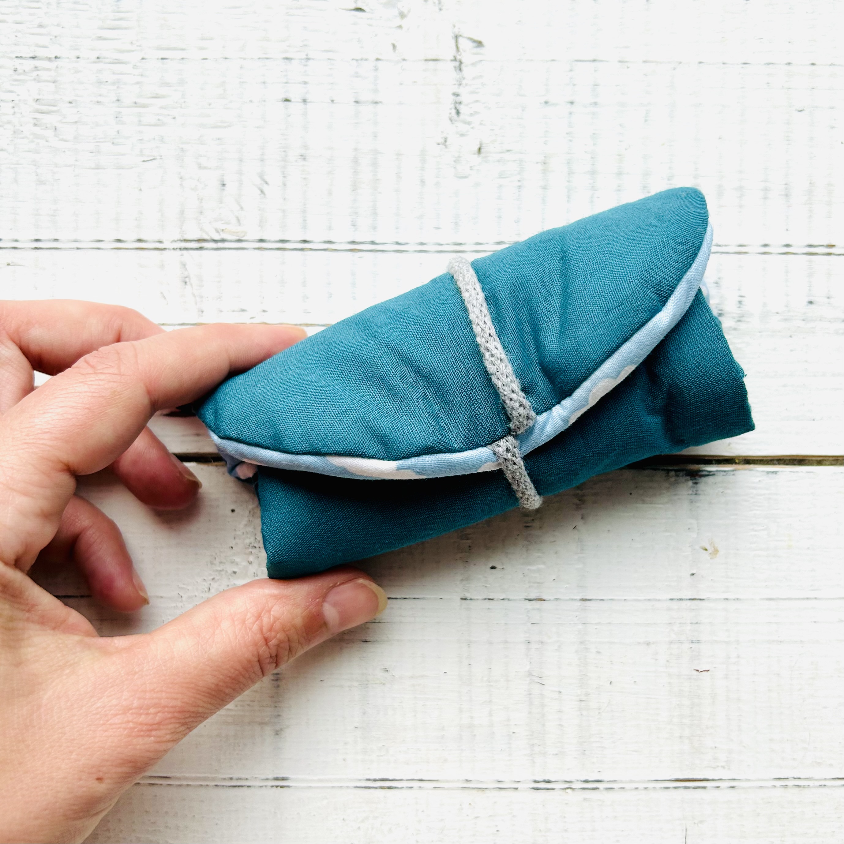 Medvídek či jezevec jsou vybaveni spacákem. Můžete ho snadno sbalit – stačí spacák zarolovat a pak přetáhnout očko / poutko přes spacákovou ruličku (omrkněte na fotkách, jak na to).