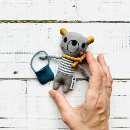 Hračka má poutko, abyste ji mohli zavěsit: na hrazdičku pro miminko, na kočárek, na batoh či na klíče.